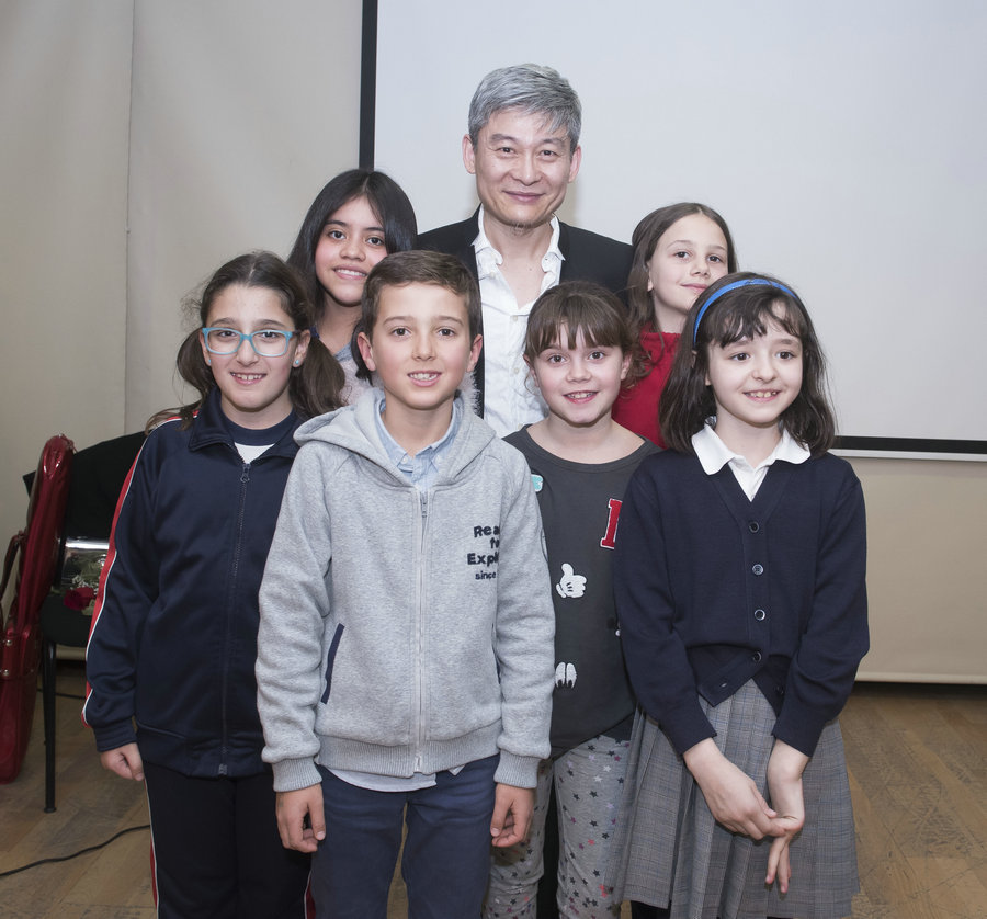 童真?歡顏——1月12日,著名作曲家馬久越在馬德里阿瑪尼爾音樂學院為當?shù)貛熒I上大師課。[攝影:Adolfo Barroso Simon]