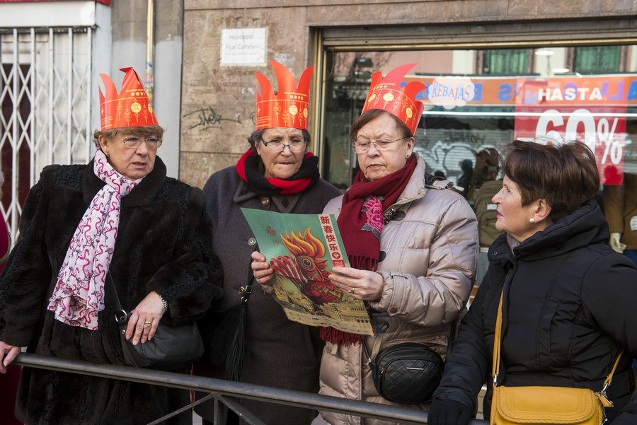 A total of 150,000 brochures are distributed around Madrid during Chinese New Year. Residents, based in the area, glance over the major festival events available. [Photo/Adolfo Barroso Simon]