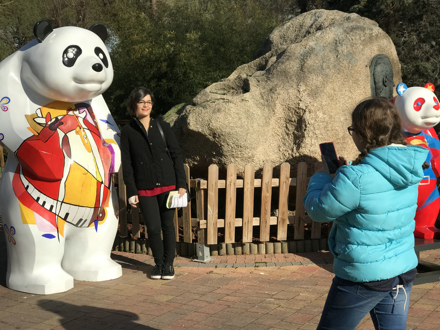 The Madrid Zoo Aquarium presented 18 panda sculptures from Jan 12 to Feb 4, which became a hotspot for picture-taking. [Photo/Chen Guangyu]