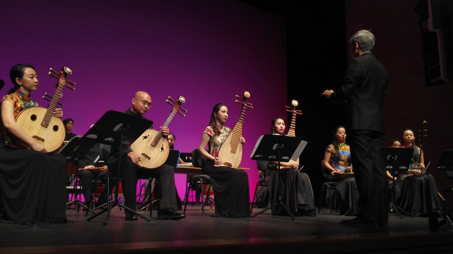 The Sound of China Orchestra performs an encore, Flying Fairies Playing Pipa, during a Chinese New Year concert in Valencia, Spain on Jan 22, 2017. Ma Jiuyue, leading the Sound of China Orchestra, presented a musical feast for the audience. [Photo/Xu Haoliang] |