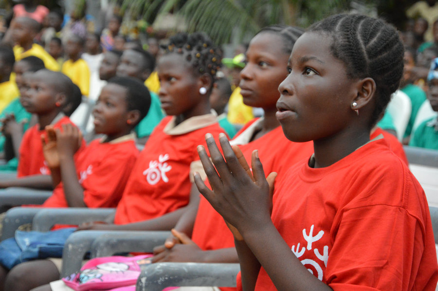 2017年1月24日,貝寧帕烏市托霍湖畔,甘肅藝術(shù)團在帕烏市舉辦專場演出。圖為聚精會神地小觀眾。[攝影:迪迪埃]