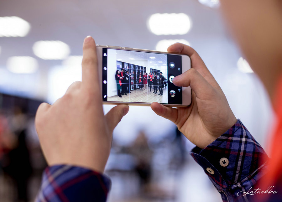The Chinese New Year flash mob is organized at the China Cultural Center in Minsk in Belarus. People take photos to record the moment. [Photo/China Cultural Center in Minsk]