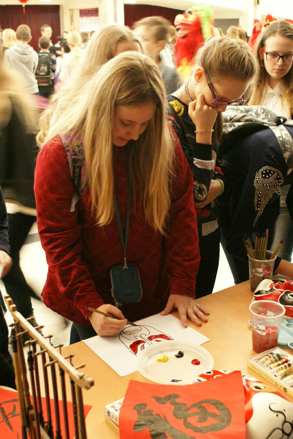 A local teenager paints the Peking Opera facial mask red on the Happy Chinese New Year Fair in Minsk, Belarus. [Photo/Chinese Embassy in Belarus]