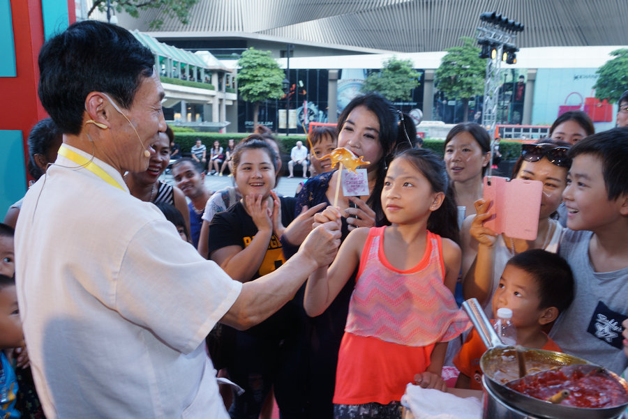2017年1月21日,泰國曼谷世貿(mào)中心廣場(chǎng)外,吹糖人非遺展示互動(dòng)。[攝影:Mr. Waruth Miksiragul]
