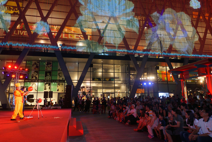 2017年1月21日,泰國曼谷世貿(mào)中心廣場外,曼谷中國文化中心與河南文化廳、泰國世貿(mào)集團共同舉辦的春節(jié)廟會活動街景。[攝影:Mr. Waruth Miksiragul]