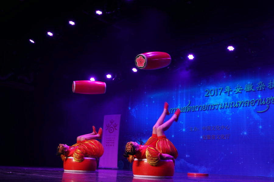 The China Cultural Center in Bangkok hosts an Anhui acrobatic show on Feb 4, 2017. [Chen Mishuo]