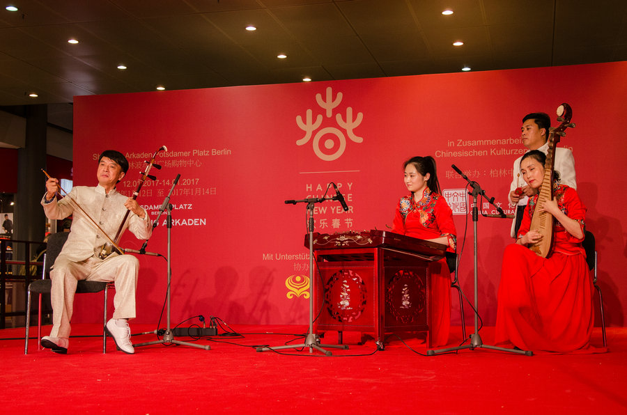 Chinese musicians perform folk music in Berlin, Germany. [Photo by Sylvia Acksteiner]