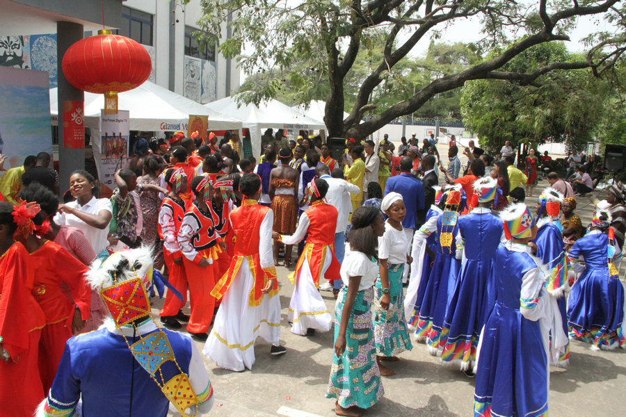 Dancers get ready for a show. The China Cultural Center in Nigeria holds its first Chinese New Year Fair on January 28, attracting more than 2,000 local people and employees of Chinese-funded organizations. [Photo/Cai Xiaohong]