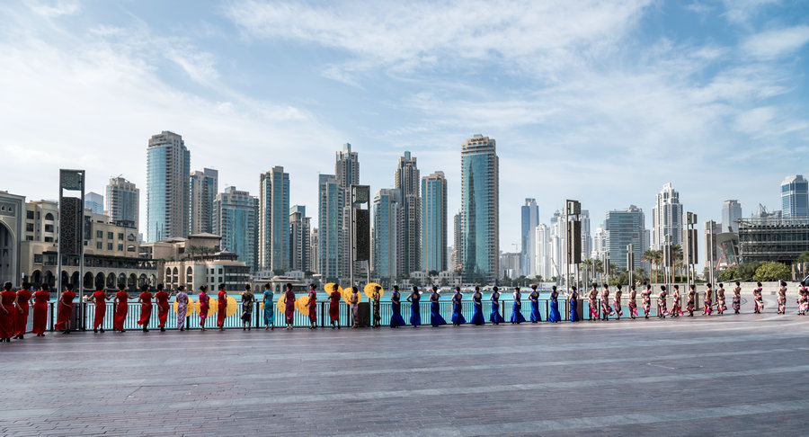 A Chinese New Year flash mob gathers in Dubai on Jan 15, 2017 to celebrate Spring Festival. Nearly 400 Chinese from more than 30 countries met to celebrate Spring Festival with a variety of cultural events. [Photo/Cui Yi]
