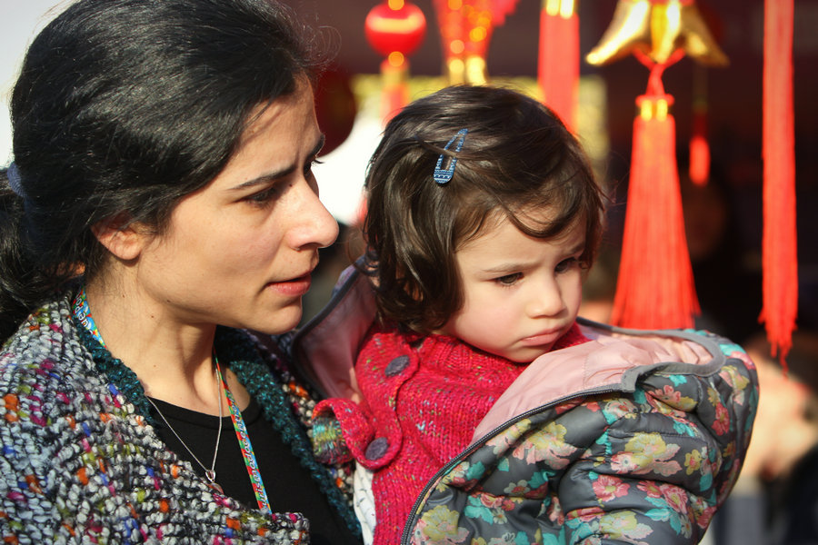 A mother and daughter look at articles on display in Lisbon on Jan 21, 2017. [Photo/Jin Jie].