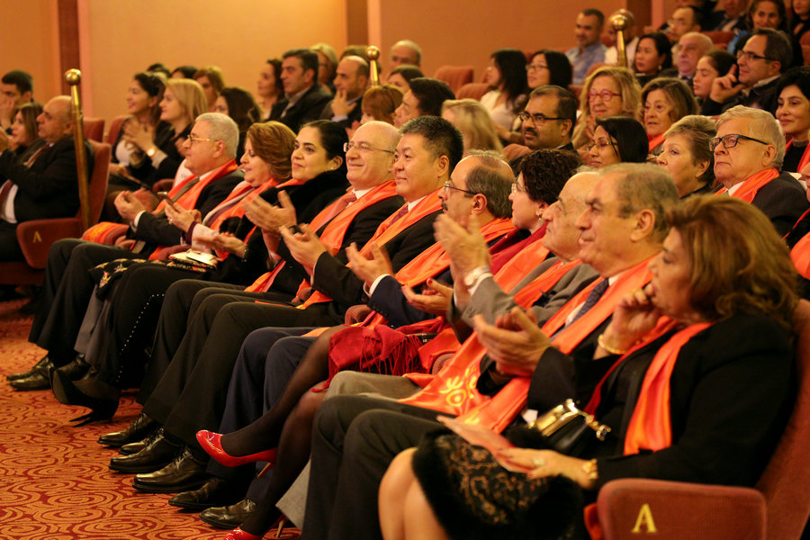 The Chinese embassy in Lebanon holds a Chinese New Year Concert at the theater of Casino du Liban on Feb 17, 2017. Lebanon's Culture Minister, diplomatic envoys and representatives of China- funded enterprises attended the event. The Jiangsu Women's Traditional Orchestra charmed the audience with Chinese folk music. [Photo/Bi Jie]