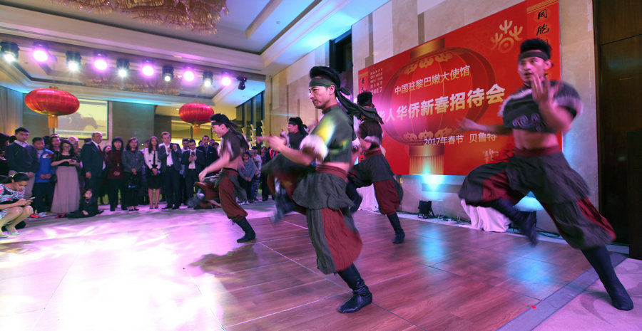 中國(guó)駐黎巴嫩大使館舉辦2017年華人華僑新春招待會(huì)。[攝影:熊志華]