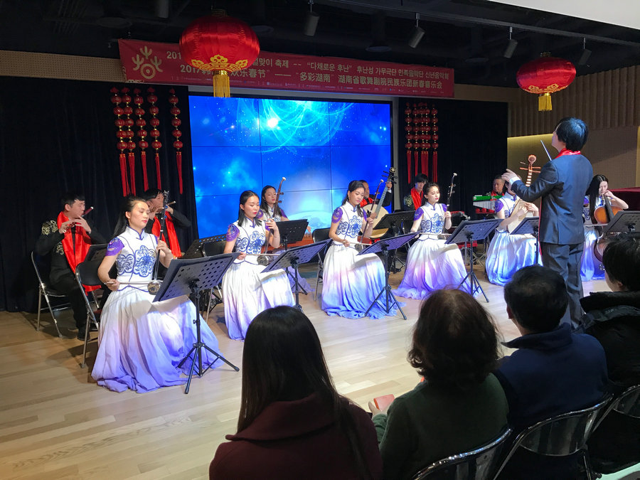 1月16日,湖南省歌舞劇院民族樂團在首爾中國文化中心舉辦新春音樂會。[攝影:高寧]