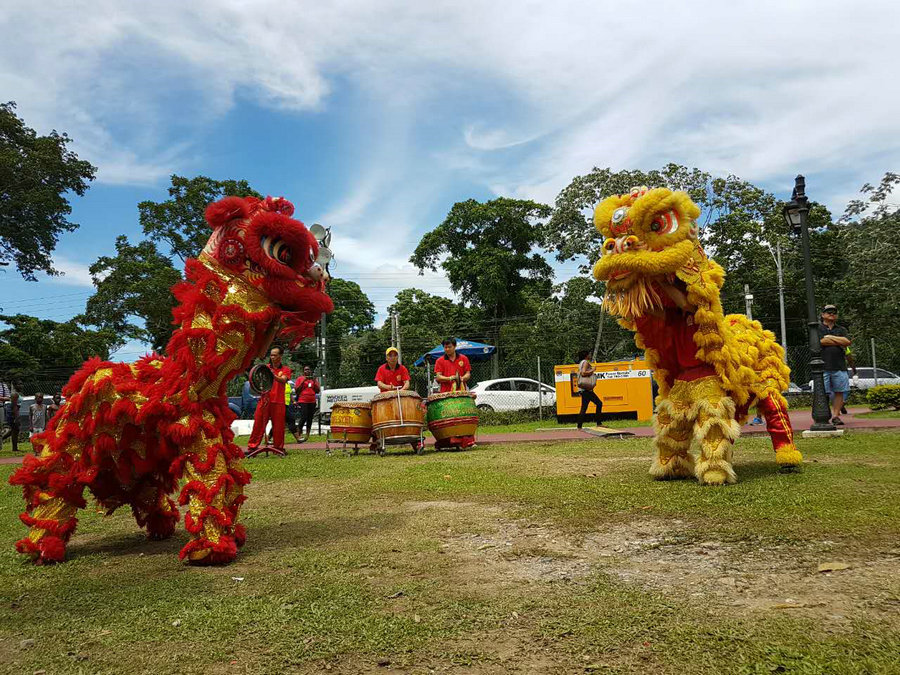 特立尼達和多巴哥共和國歡樂春節(jié)慶?;顒印D為舞獅表演。[攝影:邢雪君]