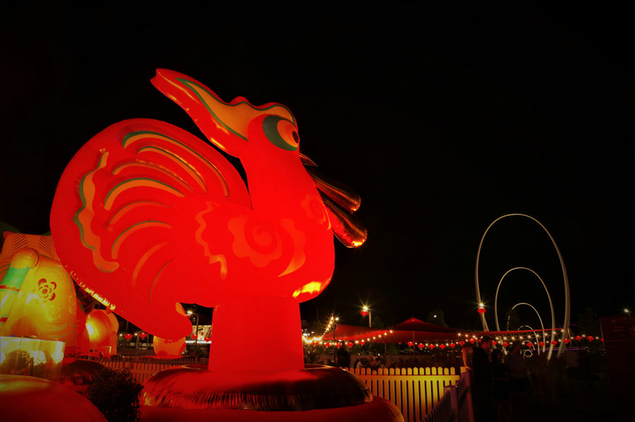 雄雞珀斯唱友誼 2017年1月28日,澳大利亞西部城市珀斯市中心廣場為迎接中國春節(jié)裝飾一新。[攝影:陳慶霞]