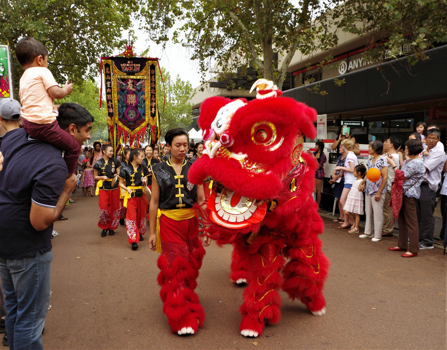 獅王鬧春 2017年1月29日,澳大利亞的西部城市珀斯市中心舞獅歡度春節(jié)。[攝影:陳慶霞]