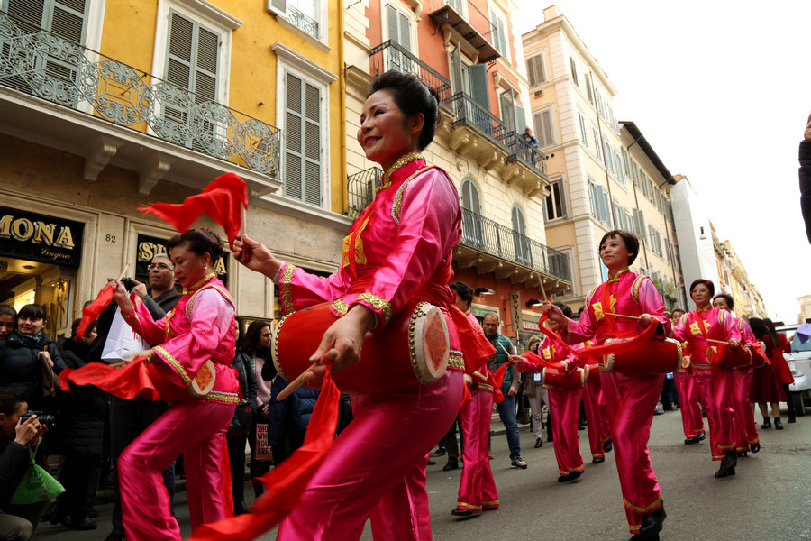 羅馬華僑腰鼓隊舞動歡樂春節(jié) 1月28日是農歷正月初一,意大利羅馬市中心又迎來了一年一度的“歡樂春節(jié)”大型文化慶祝活動。羅馬華僑腰鼓隊的腰鼓表演將歡樂春節(jié)游行的氣氛推至高潮,意大利民眾對原汁原味來自中國的精彩的演出贊嘆不已,正在表演的藝術家們的臉上洋溢著歡樂幸福的微笑。[攝影:劉慶輝]