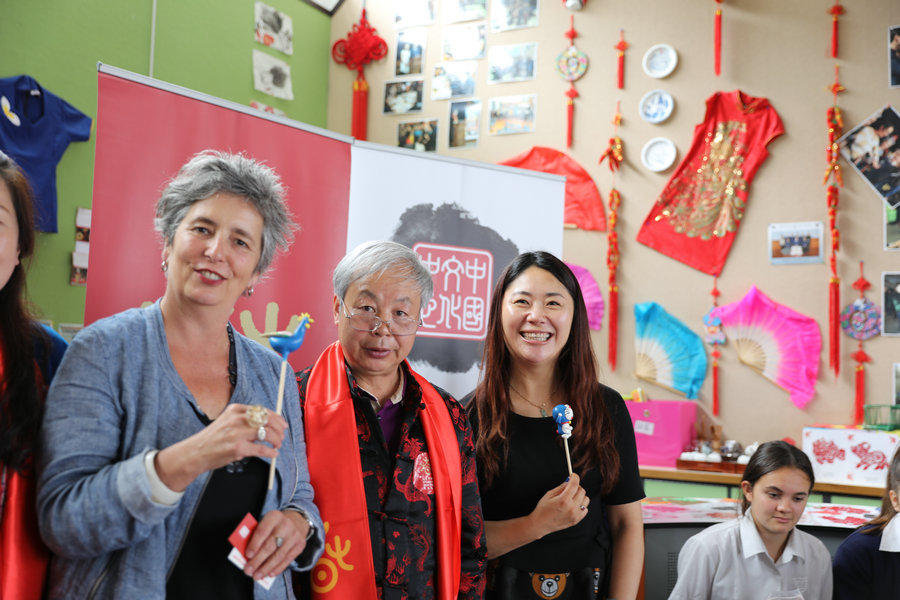 新西蘭東方女子中學(xué)校長對中國非遺技藝贊不絕口。[攝影:方華]