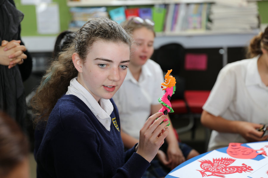新西蘭女生體驗(yàn)“歡樂春節(jié)”非遺展演之手工面塑。[攝影:方華]