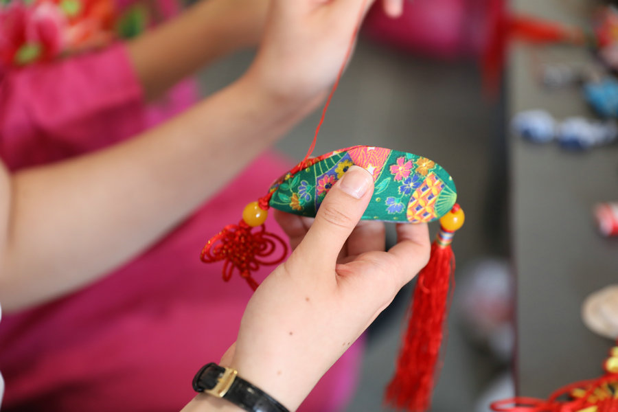 2017“歡樂春節(jié)”非遺展演來到新西蘭-青口貝殼化身布藝魚。[攝影:方華]