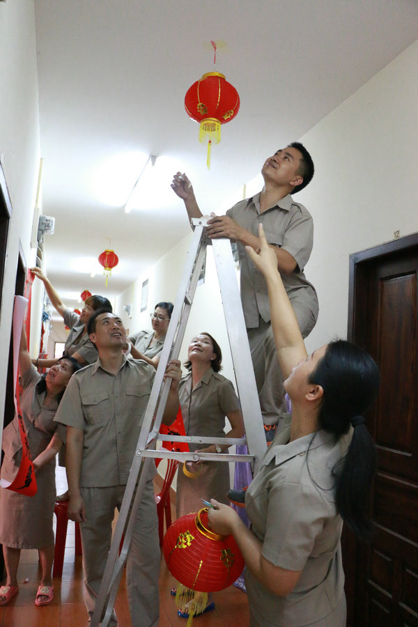 年味——新春前夕駐老撾萬象的中國教師們,在學校教師宿掛燈籠、貼福字、對聯(lián)、窗花等,喜迎即將到來的中國農(nóng)歷雞年。[攝影:周明秀]