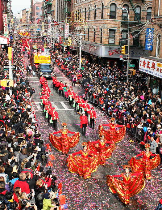 婀娜多姿樂喧天——2014年2月2日,紐約唐人街新春游行。[攝影:曾乃斌]