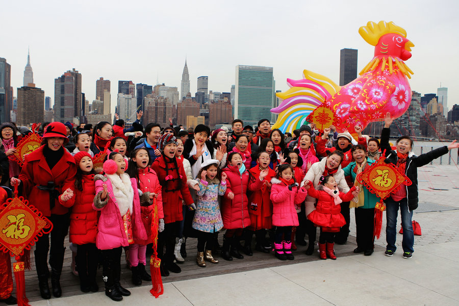 歡歌慶新春——2017年1月14日,紐約享特斯公園、《福滿五大洲 快樂中國年》拜年快閃活動(dòng)。[攝影:曾乃斌]