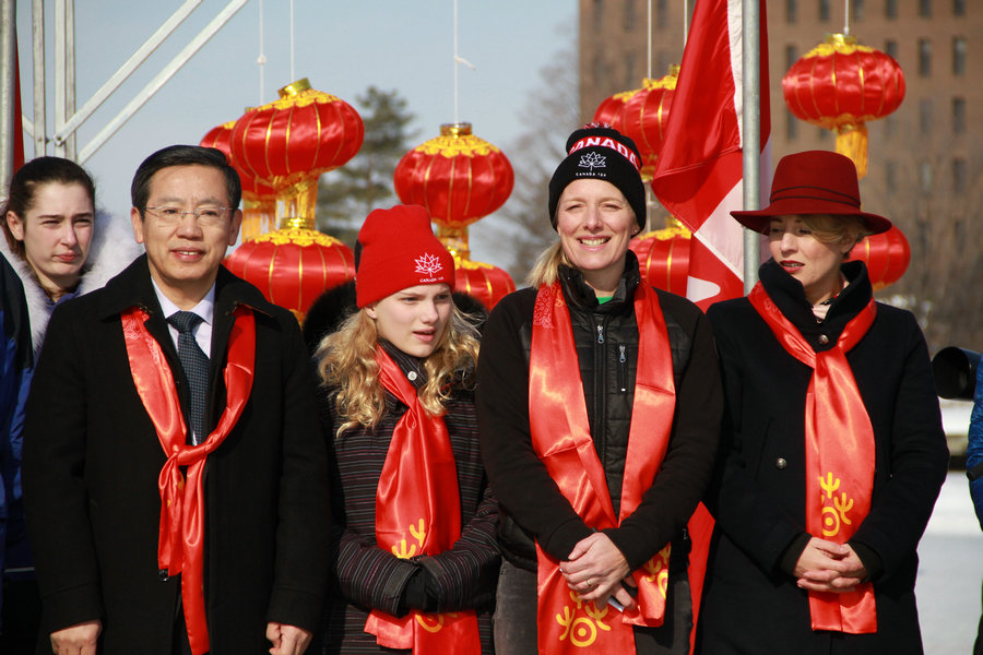 2017年2月18日,加拿大遺產(chǎn)部長(zhǎng)、環(huán)境部長(zhǎng)和駐加使館臨時(shí)代辦出席首屆渥太華冰上龍舟賽開(kāi)幕式。[攝影:張洪浩]