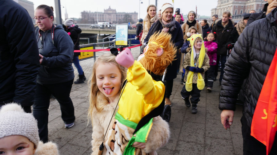 我和孫大圣——2017年1月28日,瑞典斯德哥爾摩“歡樂春節(jié)”活動(dòng)中的瑞典小觀眾。[攝影:蔣容]