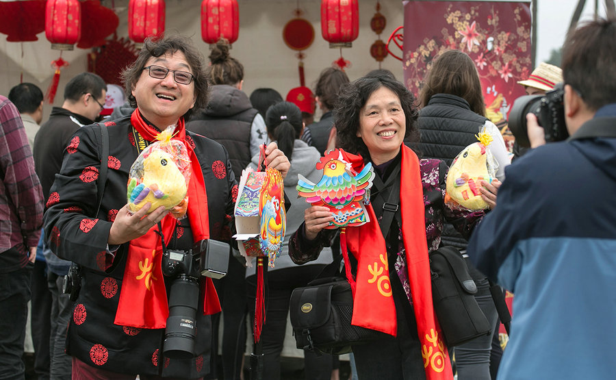 《喜氣洋洋》——新西蘭基督城舉辦中國(guó)春節(jié)燈會(huì),當(dāng)?shù)厝A僑夫婦合影。[攝影:陳建懷]