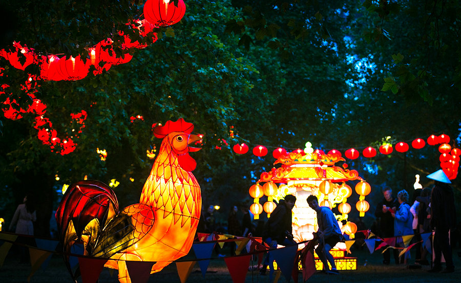 新西蘭基督城春節(jié)燈會(huì),《雄雞鳴春》。[攝影:陳建懷]