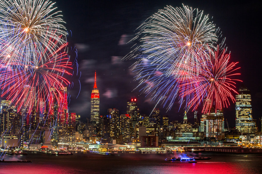 美國紐約火樹銀花賀新春。春節(jié)期間,在紐約總領(lǐng)館前的哈德遜河上燃放煙花,與各族裔民眾一起歡度新春佳節(jié)。[攝影:Yan Liang Hu]