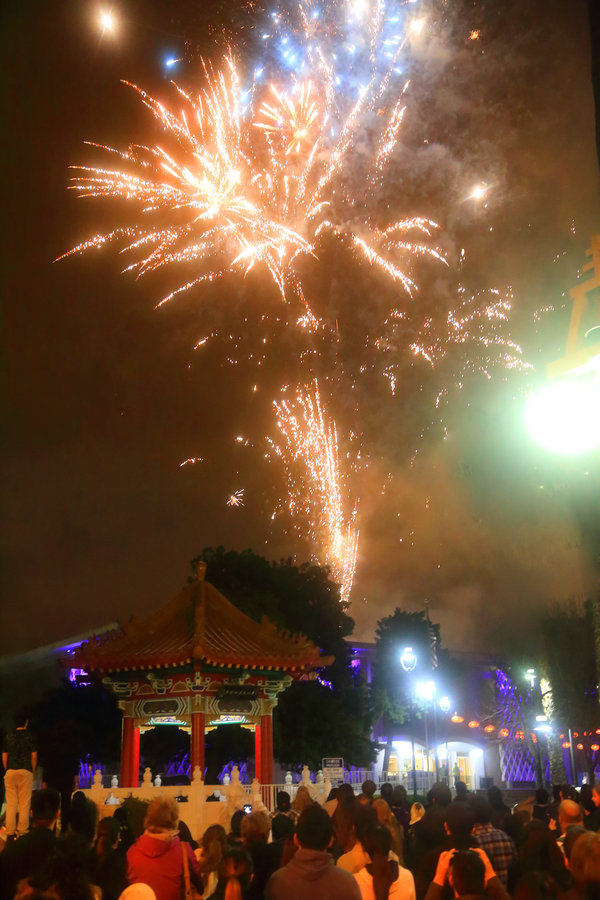 美國加州里弗賽德市是加州大學河濱分校所在地,以盛產(chǎn)橘子聞名于世,華人先民即主要以采、運橘子為業(yè)。由于華人的大量聚集,中國文化和習俗被長期繼承下來,按照中國傳統(tǒng)過年,且得到當?shù)卣闹С趾蛥f(xié)作,成為最大亮點。每年的大年三十,市區(qū)就會張燈結(jié)彩,披上中國年的盛裝。當?shù)鼐用窈腿A人走上街頭舞龍耍獅,舉行盛大的慶祝游行,并共同表演各類游藝、文藝節(jié)目,共度佳節(jié)。屆時萬人空巷,禮花綻放,城市完全沉浸在中國文化的濃厚氛圍中。[攝影:徐純]