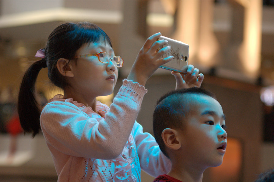 廟會現(xiàn)場的姐弟倆。[攝影:陳世勛]