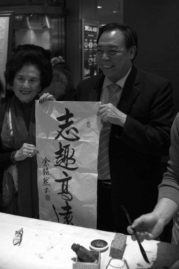 廟會(huì)會(huì)場(chǎng)上的書(shū)法展示。[攝影:陳世勛]