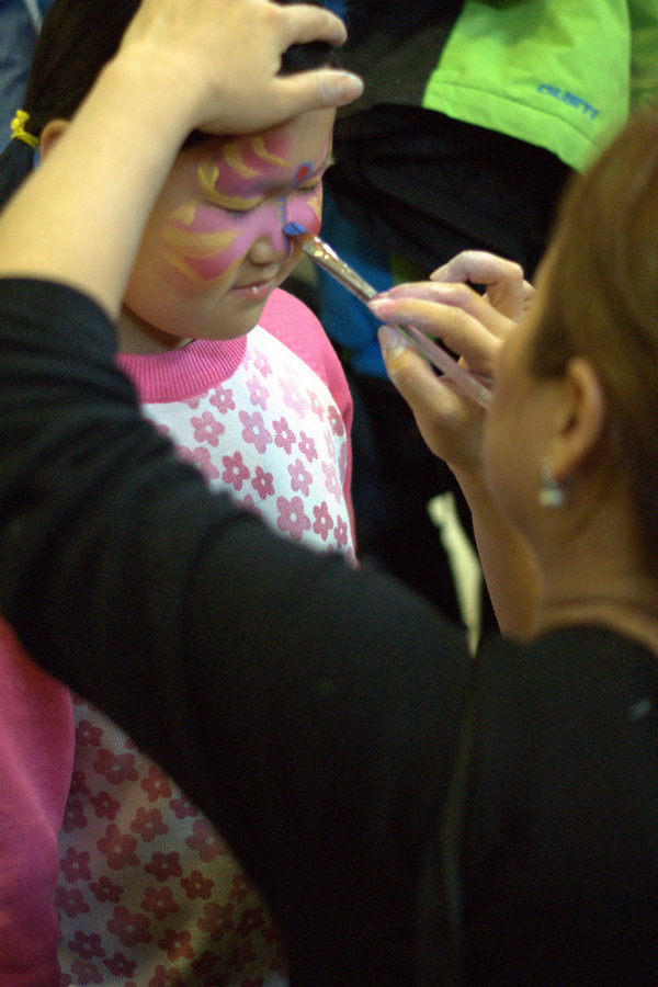 小朋友在廟會(huì)展場(chǎng)上畫臉。[攝影:陳世勛]