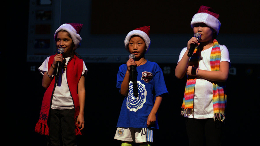 小歌手——蒙特利爾春晚現(xiàn)場小朋友合唱。[攝影:陳世勛]
