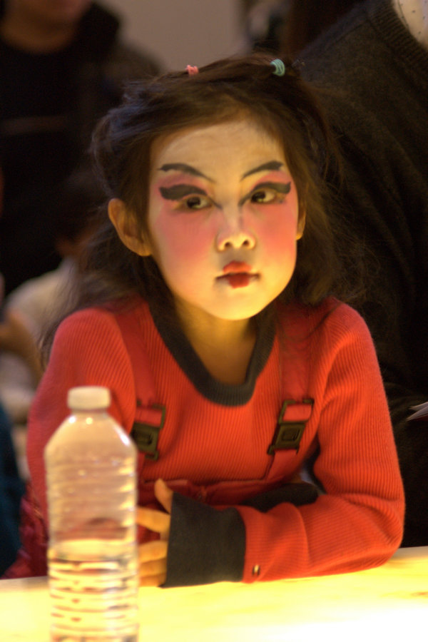 廟會(huì)上專心觀看表演的小朋友。[攝影:陳世勛]