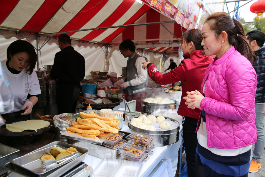 2017年1月8日,第11屆名古屋春節(jié)祭,日本民眾在春節(jié)祭的食品攤位購買中國傳統(tǒng)美食。[攝影:柳龍旭]