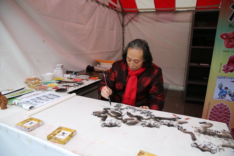2017年1月8日,第11屆名古屋春節(jié)祭,人間國寶泥猴張現(xiàn)場演示繪畫泥猴。[攝影:柳龍旭]