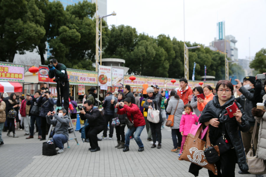 2017年1月8日,第11屆名古屋春節(jié)祭,參與春節(jié)祭的日本民眾拍攝春節(jié)祭現(xiàn)場活動(dòng)照片。[攝影:柳龍旭]