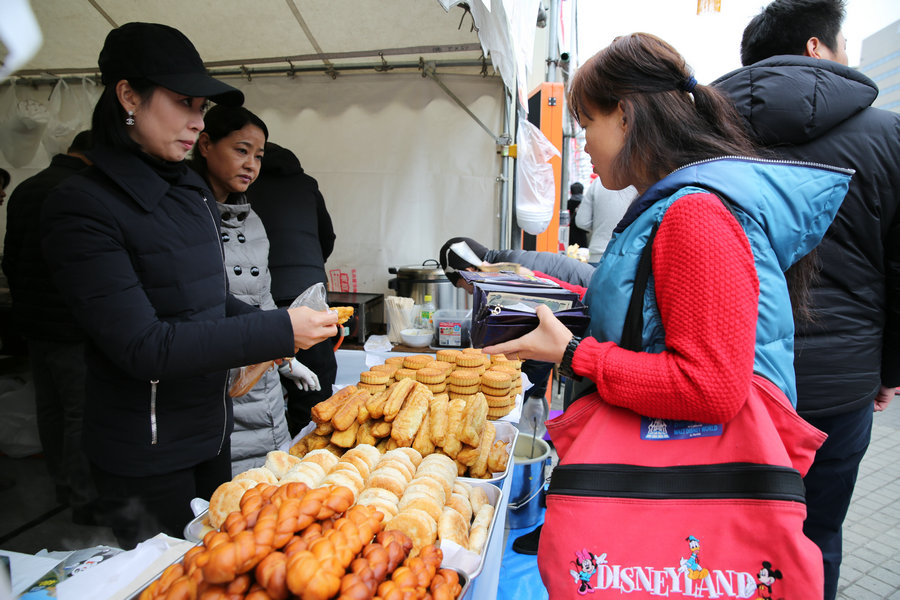2017年1月8日,第11屆名古屋春節(jié)祭,日本民眾在春節(jié)祭的食品攤位購買中國傳統(tǒng)美食。[攝影:柳龍旭]