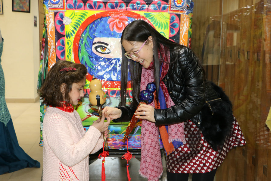 巴基斯坦少女學(xué)吹葫蘆絲 2017年1月12日,由中國駐巴基斯坦大使館文化處主辦的“歡樂新春進校園”活動在巴基斯坦TMUC大學(xué)伊斯蘭堡校區(qū)舉行。該活動通過中國傳統(tǒng)文化展示、中國圖片展、放映中國電影等形式,讓巴基斯坦大學(xué)師生了解春節(jié)所蘊含的文化理念。[攝影:王琦]