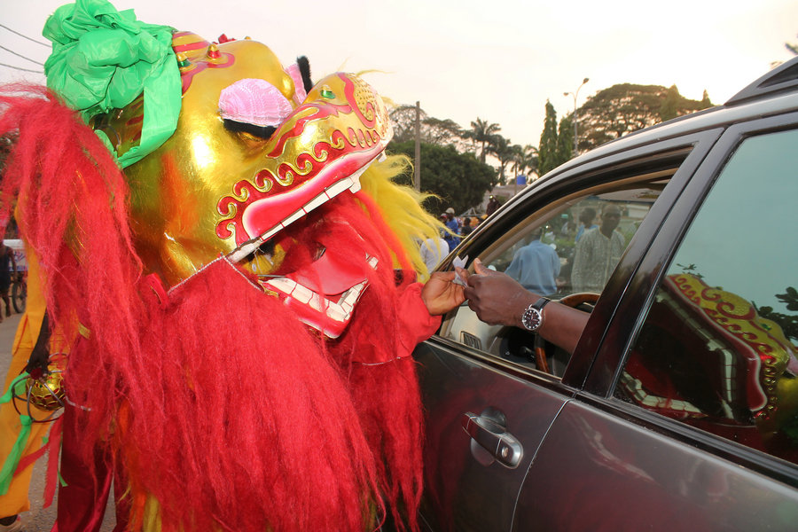 貝寧歡樂春節(jié)游行。[攝影:Zounyekpe Coffi Séraphin] A lion dance performance at a Chinese New Year parade in Porto-Novo, Benin. [Photo by Zounyekpe Coffi Séraphin]