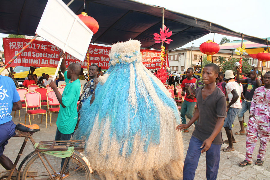 貝寧歡樂春節(jié)游行。[攝影:Zounyekpe Coffi Séraphin] People take part in a Chinese New Year parade in Benin. [Photo by Zounyekpe Coffi Séraphin]