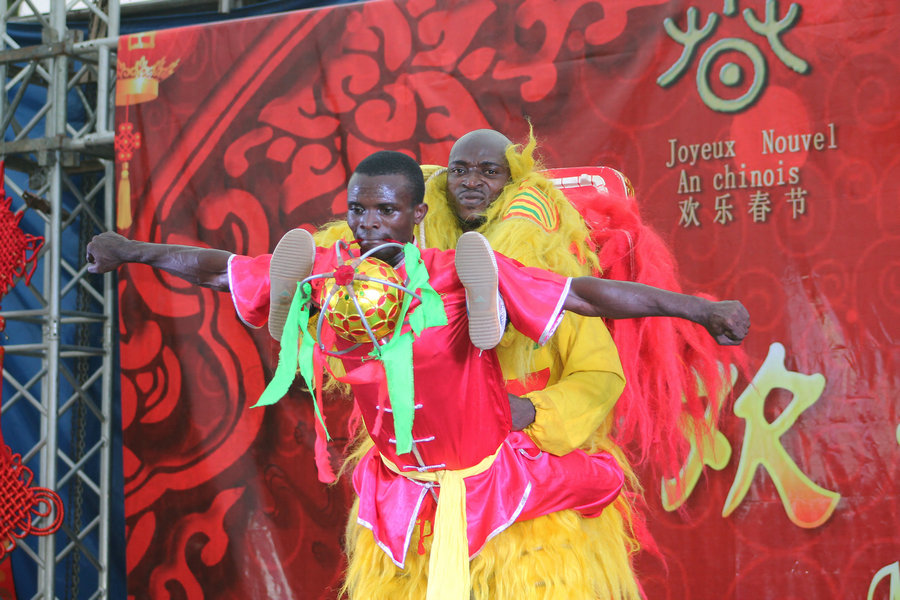 貝寧歡樂春節(jié)慶祝活動。[攝影:Zounyekpe Coffi Séraphin] Beninese people perform at a Chinese New Year gala in Benin. [Photo by Zounyekpe Coffi Séraphin]