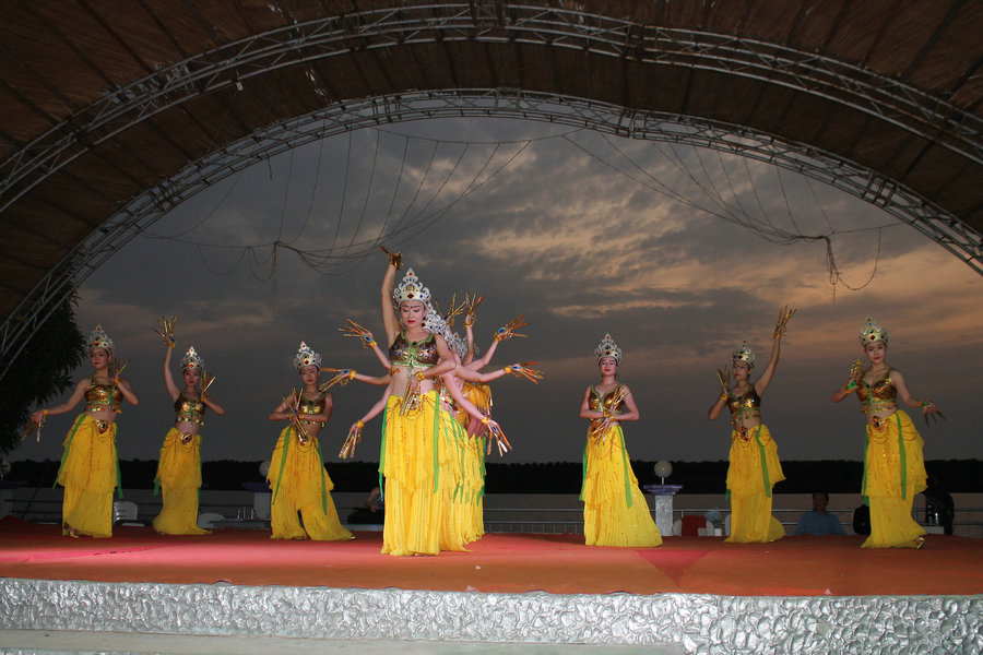 Dancers from China's Gansu Art Troupe perform in Adjadi, Tori, Benin. [Photo by Zounyekpe Coffi Séraphin]