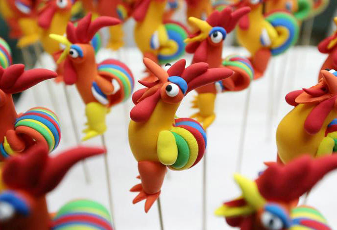 Folk artist Kan Zongqin makes rooster-shaped dough modellings in Zaozhuang, East China's Shandong province, Jan 8, 2017.