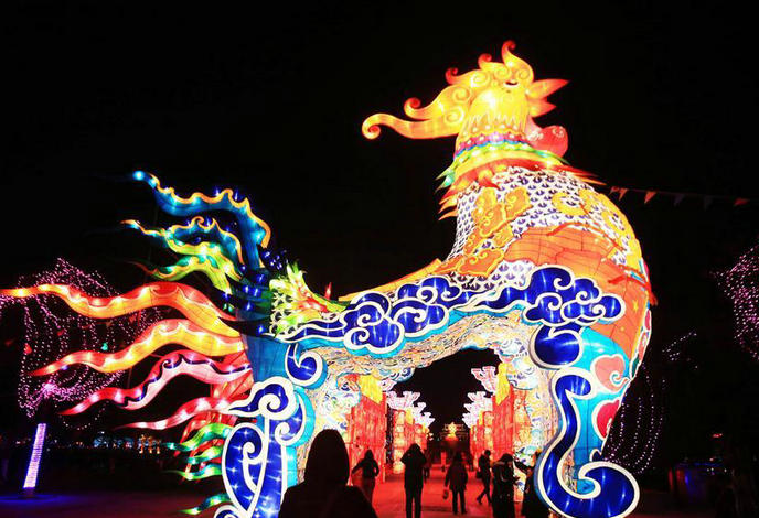 The New Year decorations are set in Longtan Park in Beijing, capital of China, Jan 24, 2017, to greet the upcoming Spring Festival, or Chinese Lunar New Year, which falls on Jan 28 this year.