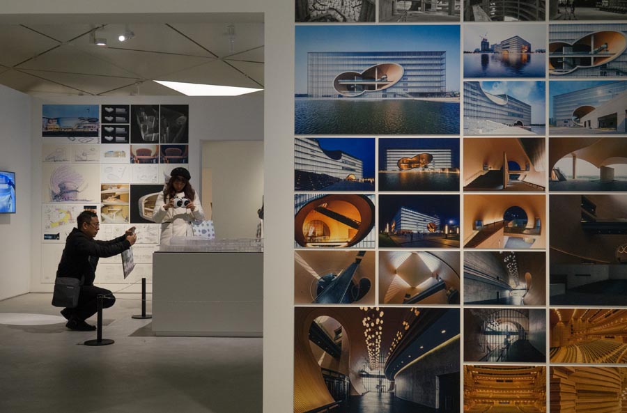 Photos, building models and documentaries are on display to show Japanese architect Tadao Ando's designs. [Photo provided to China Daily] |